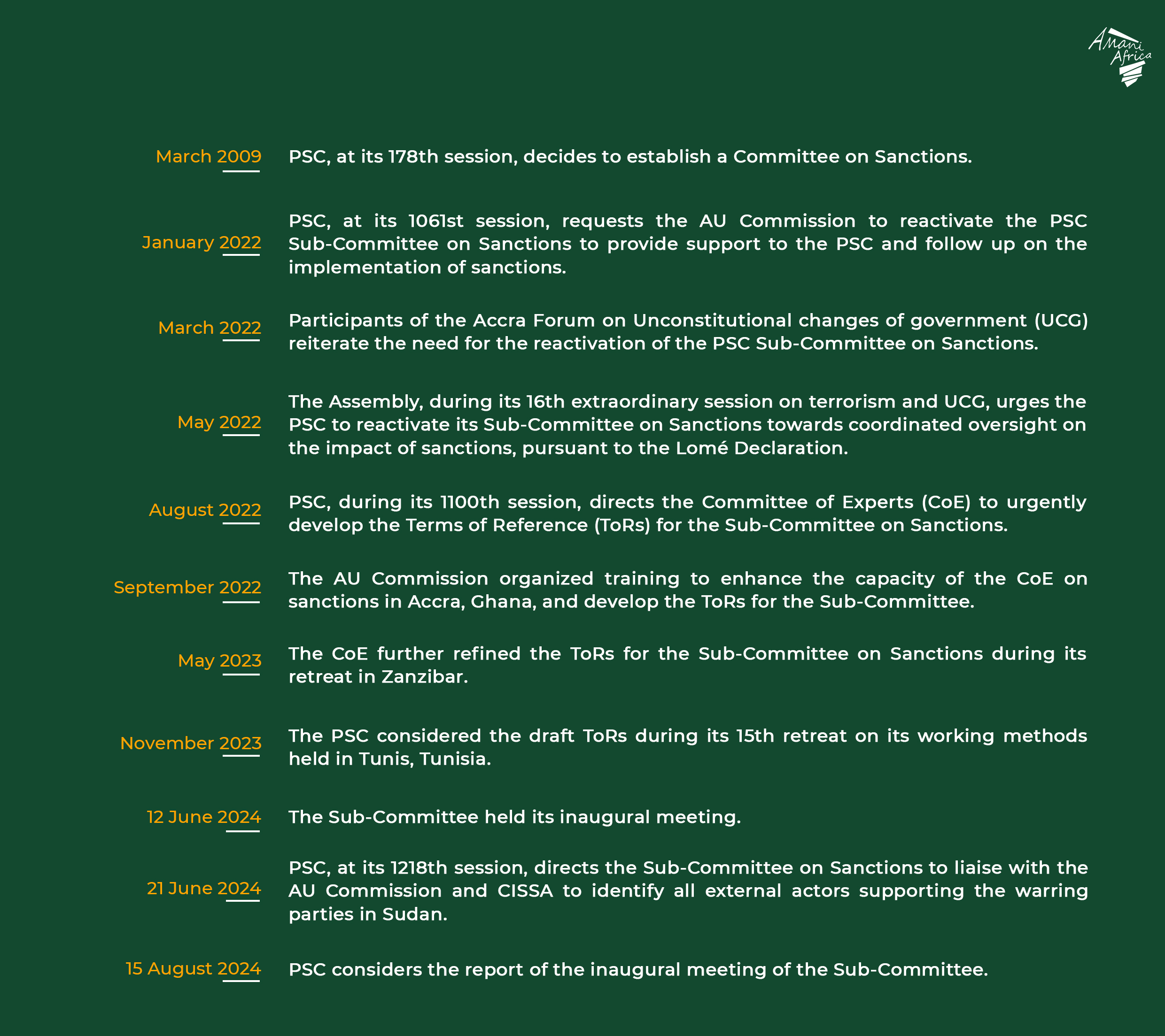 Key decisions and milestones in the operationalisation of the PSC Sub-Committee on Sanctions