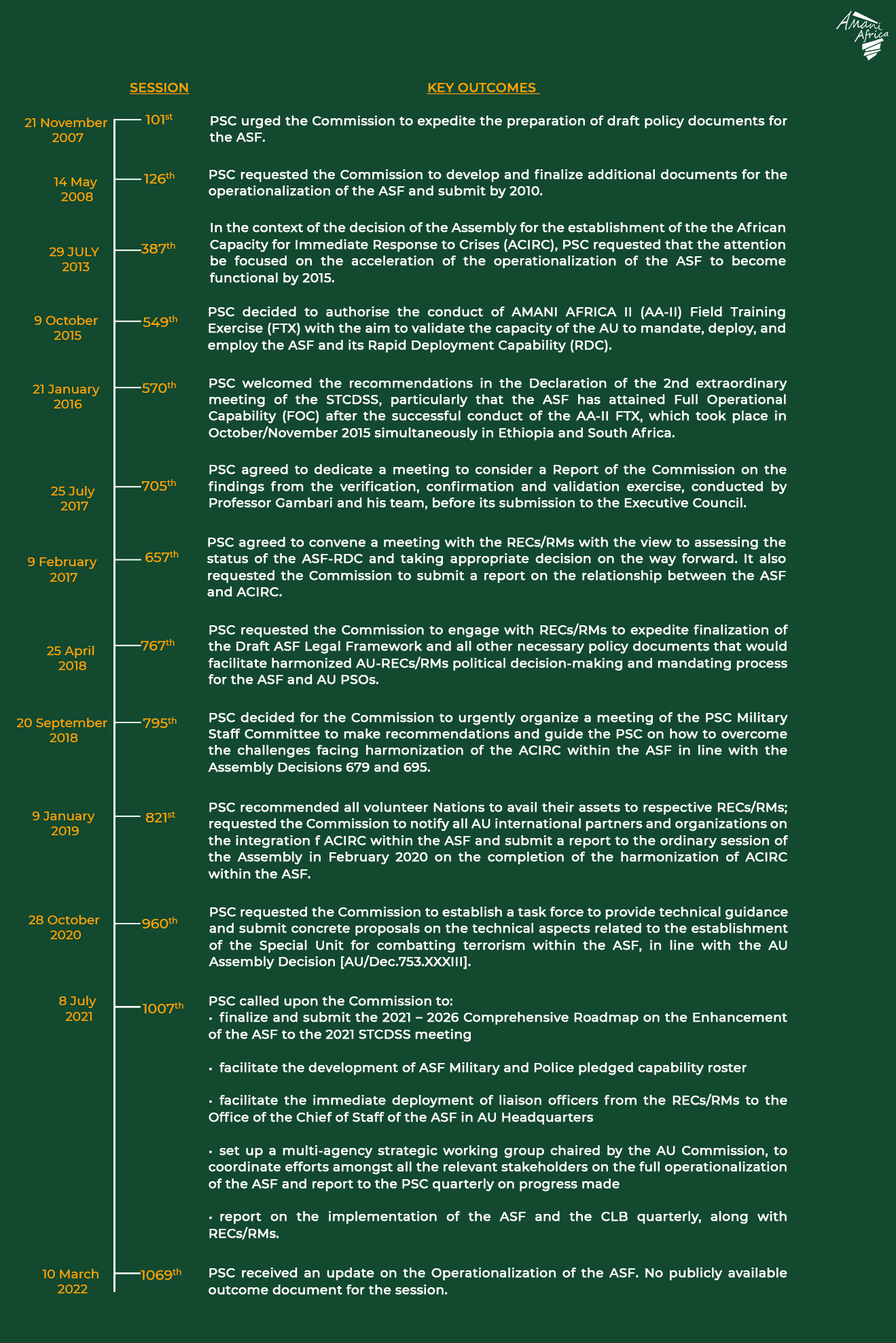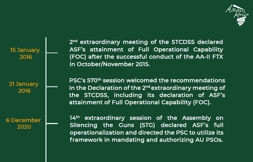 Considering that the issue of the operationalization of the ASF as envisaged in the PSC Protocol is in significant part a political issues, it would be of interest for members of the PSC to explore whether the attempt made in the MoU to clarify the modalities of use of the ASF and respective roles of RECs/RMs would be enough to effect the much discussed full operationalization of the ASF in practice.