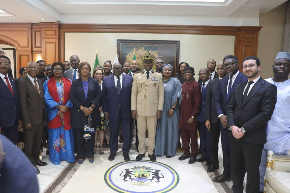 Members of the PSC on a field mission to Gabon pictured with the military leader of Gabon at the centre Curtesy of @AUC_PAPS