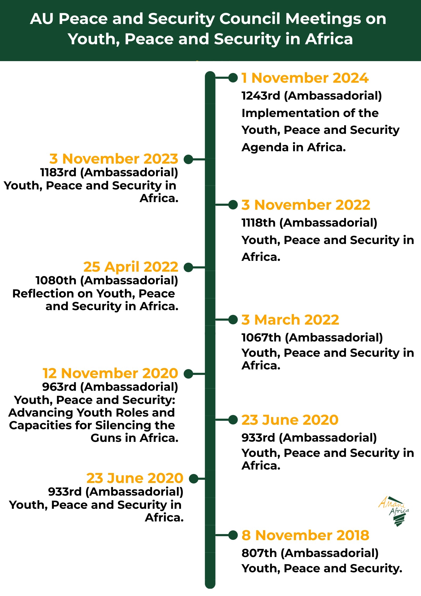 It is worth recalling that the PSC, during its 807th session held in November 2018, decided to ‘institutionalise and regularise an annual open session dedicated to Youth, Peace and Security in Africa.’ Since then, as shown in the table below, the PSC held a session on YPS annually except in 2021, with some years featuring more than one session on YPS.